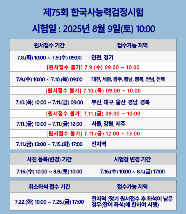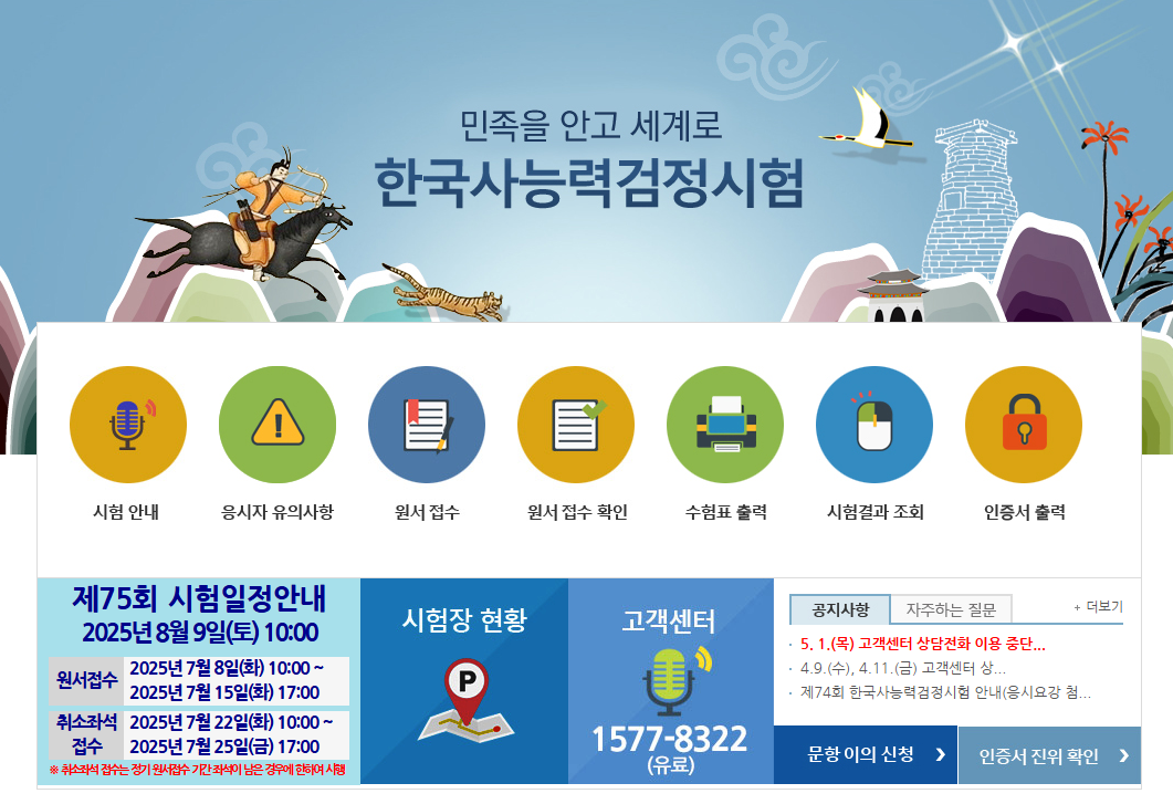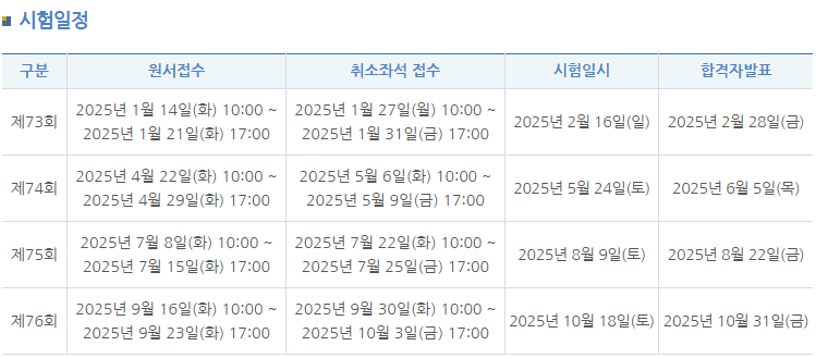 ※ 2025년 제74회(5.24 토), 제76회(10.18 토) 시험은 심화(1,2,3급)만 진행됩니다.