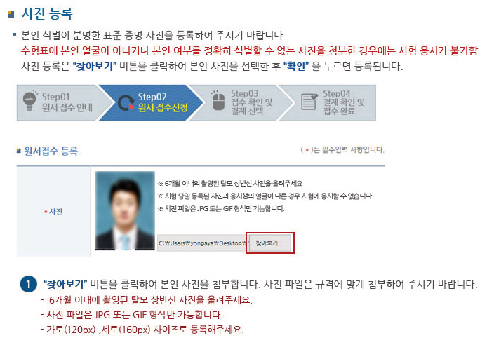 - 사진 등록 규정을 확인 하고 사진을 미리 준비하면 원활하게 접수할 수 있습니다.