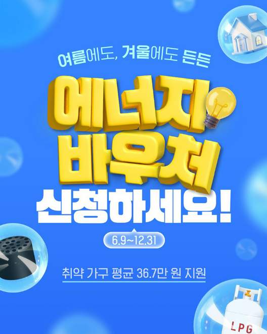 에너지바우처는 정부가 저소득층에게 계절별 에너지 비용(여름철 전기요금, 겨울철 연료비 등)을 지원해주는 현물형 복지제도입니다.