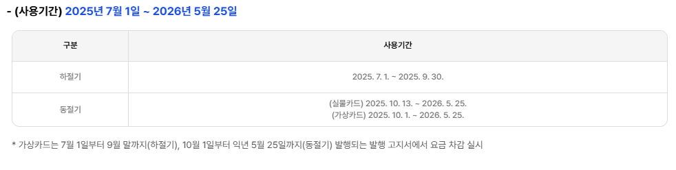 - 실물카드 방식: 2025년 10월 13일 ~ 2026년 5월 25일