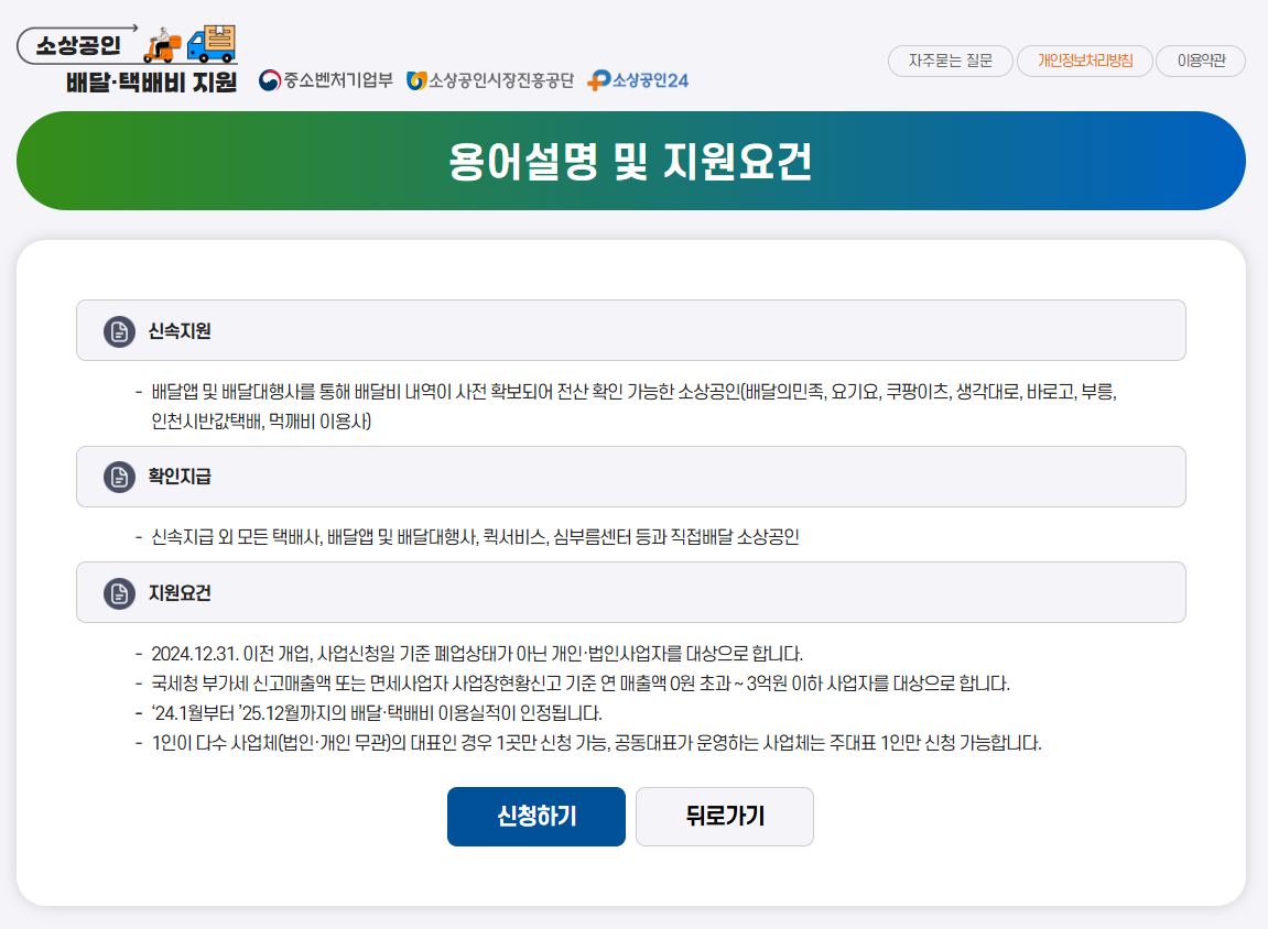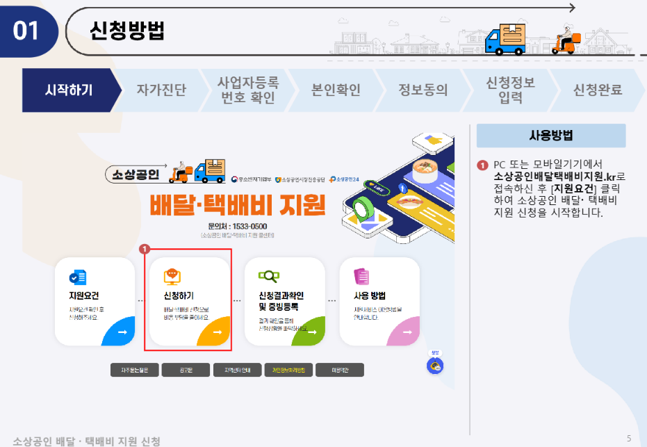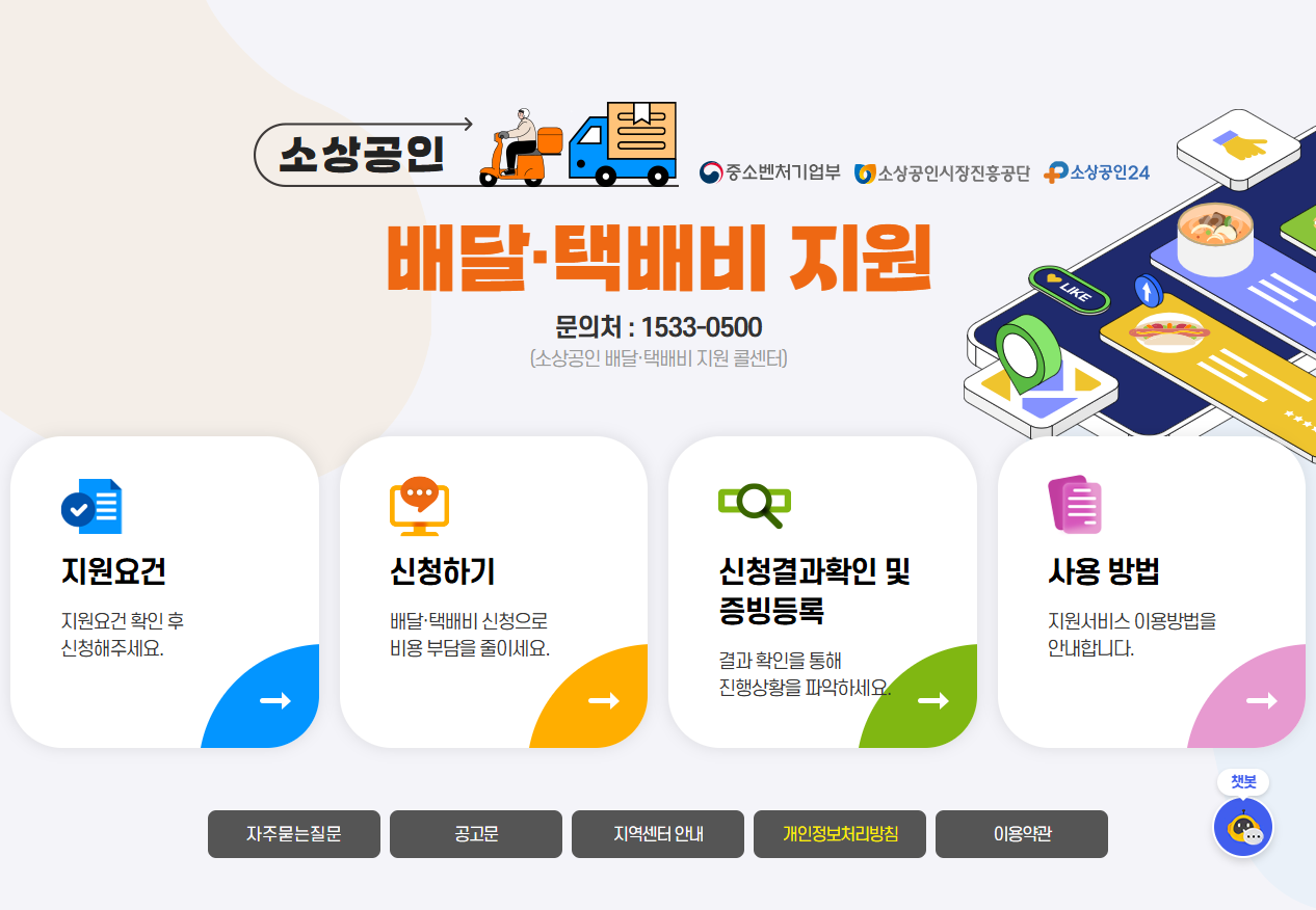 신청 웹사이트는 소상공인배달택배비지원.kr 또는 ‘소상공인24’에서 접근 가능합니다